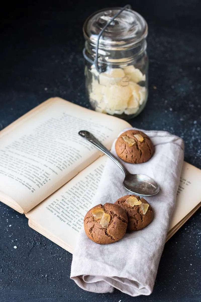 Due anni fa avevo proposto questi biscotti, in versione clean e in versione "dirty" (con il cioccolato bianco che è uno dei miei dirty pleasure!), quest'anno invece ho voluto provare una ricetta di biscotti allo zenzero, anzi tre volte allo zenzero perchè contengono zenzero fresco, in polvere e essiccato. Mi sono ispirata, fortemente, a questa ricetta che avevo visto anni fa su un altro sito; l'originale è vegana ma io ho deciso di aggiungere un uovo per cui rimangono senza latticini perchè come fonte di grasso al posto del burro c'è... la tahina! Non l'avevo mai usata nei dolci e devo dire è stata una sorpresa! Ha dato un sapore e una consistenza davvero particolare a questi biscotti allo zenzero, penso farò altri esperimenti con la pasta di sesamo nel prossimo futuro. La cosa bella? Sono senza glutine ma non si sente! Ho usato farina di grano saraceno come diceva la ricetta originale, ma penso potrebbe essere sostituita anche con altre farine o un mix. Come risultato ho ottenuto dei biscotti allo zenzero croccanti fuori e morbidi dentro (finalmente!)