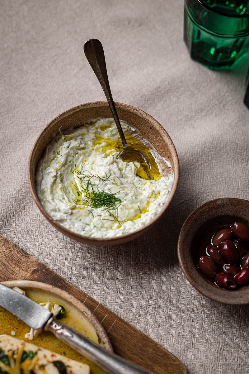 Anche tzatzichi e feta marinata possono essere preparati prima, anzi in realtà danno il loro meglio dopo 24 ore quindi via libera.