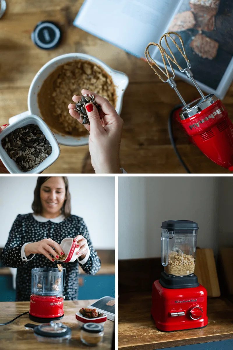 Per questo appuntamento invernale abbiamo deciso di trasformare alcuni piatti del libro in finger food e assaggi da servire ad un aperitivo Natalizio. Io sono rimasta colpita subito dalla ricetta del pane nero della Henry, che prevede un primo passaggio in un pentolino a formare un porridge, una tecnica che non avevo mai provato e mi incuriosiva molto; ho deciso quindi di provare a preparare questo pane, da proporre poi a fette a formare delle tartine di pane nero. La ricetta va seguita con attenzione, perchè i passaggi sono diversi, ma non è certamente una ricetta difficile, soprattutto se siete dotati di un artisan KitchenAid come la mia Queen of Hearts (ora scontata al 25%, io lo dico in caso Babbo Natale fosse a corto di idee) che di fatto fa tutto il lavoro per voi. Mi aspettavo un pane alla nordica, compatto e consistente, tipo il pane di segale classico, invece con sorpresa la pagnotta che esce fuori è profumatissima e morbidissima, perfette anche da tagliare e spalmarci su burro e marmellata a colazione!